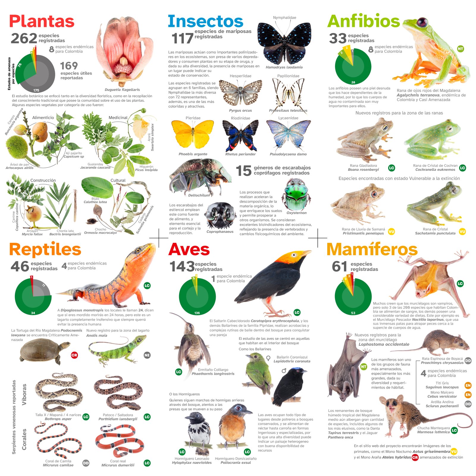 El plegable se desarrolló como material físico divulgativo compilando los resultados generales obtenidos en el proyecto de caracterización biológica. Fue distribuído y socializado con la comunidad de la Zona de Reserva Campesina en el año 2022. Se encuentra disponible para su descarga en formato PDF aquí.