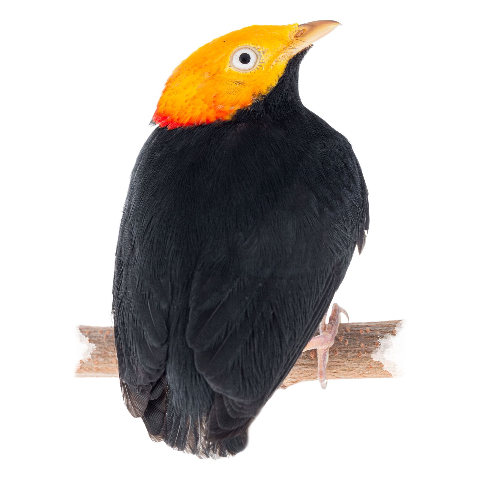 Machos cortejan en leks, nido en forma de taza construido por la hembra en una horqueta