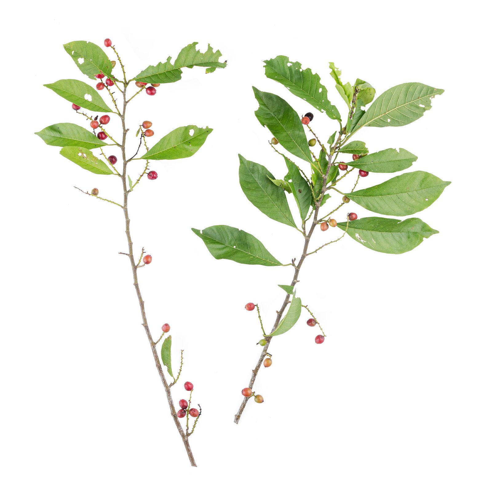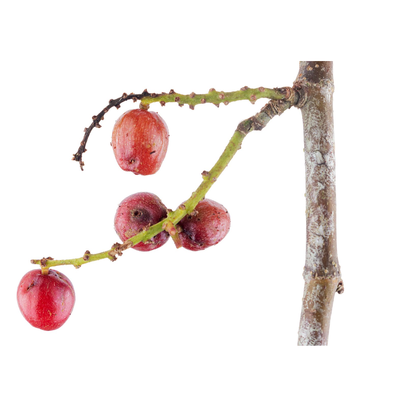 Árbol de hasta 5 m de altura. Hojas romboidales, infrutescencias en racimos axilares con frutos rojos
