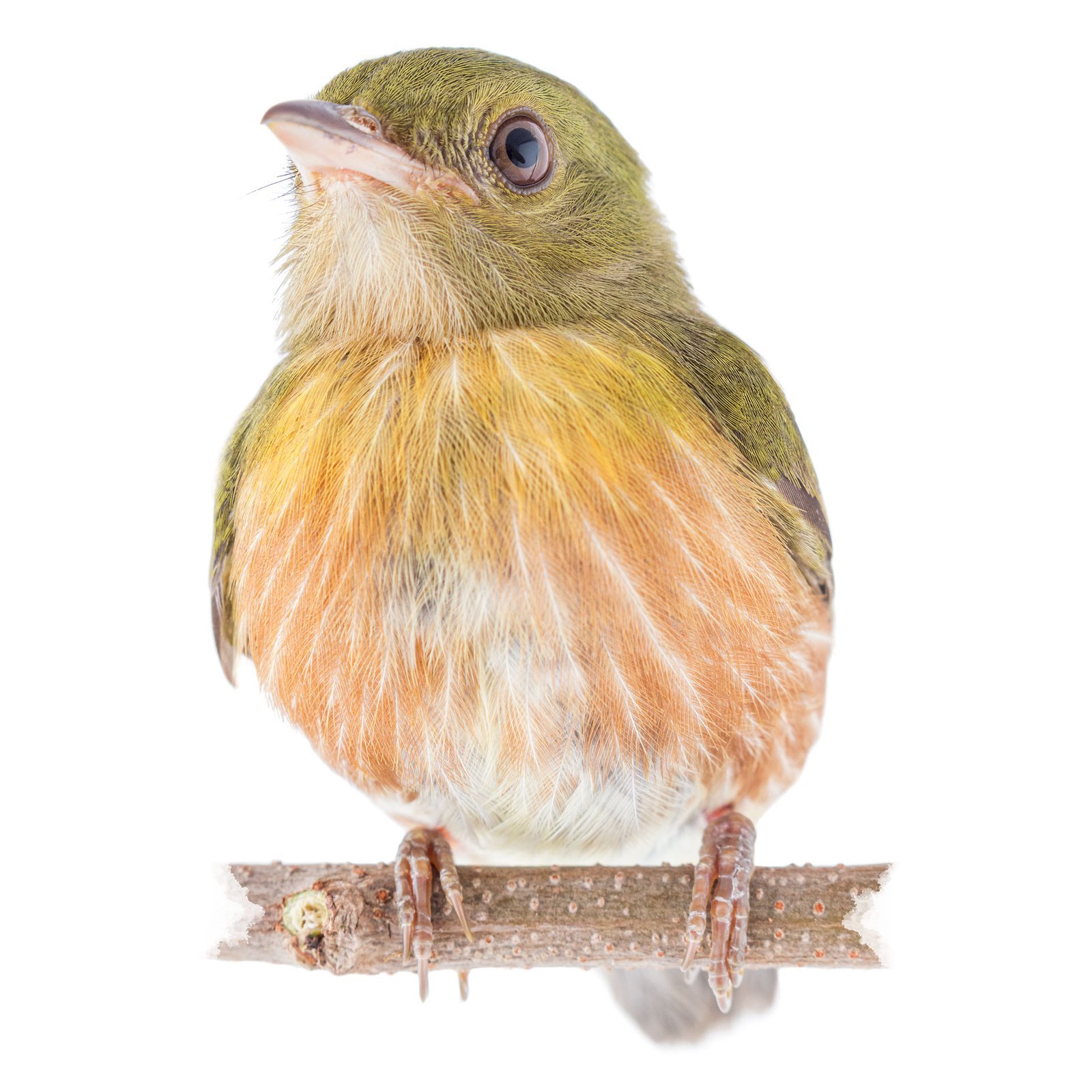 Macho con corona roja brillante y estrías blancas en vientre rojizo, hembra sin corona con estrías ventrales