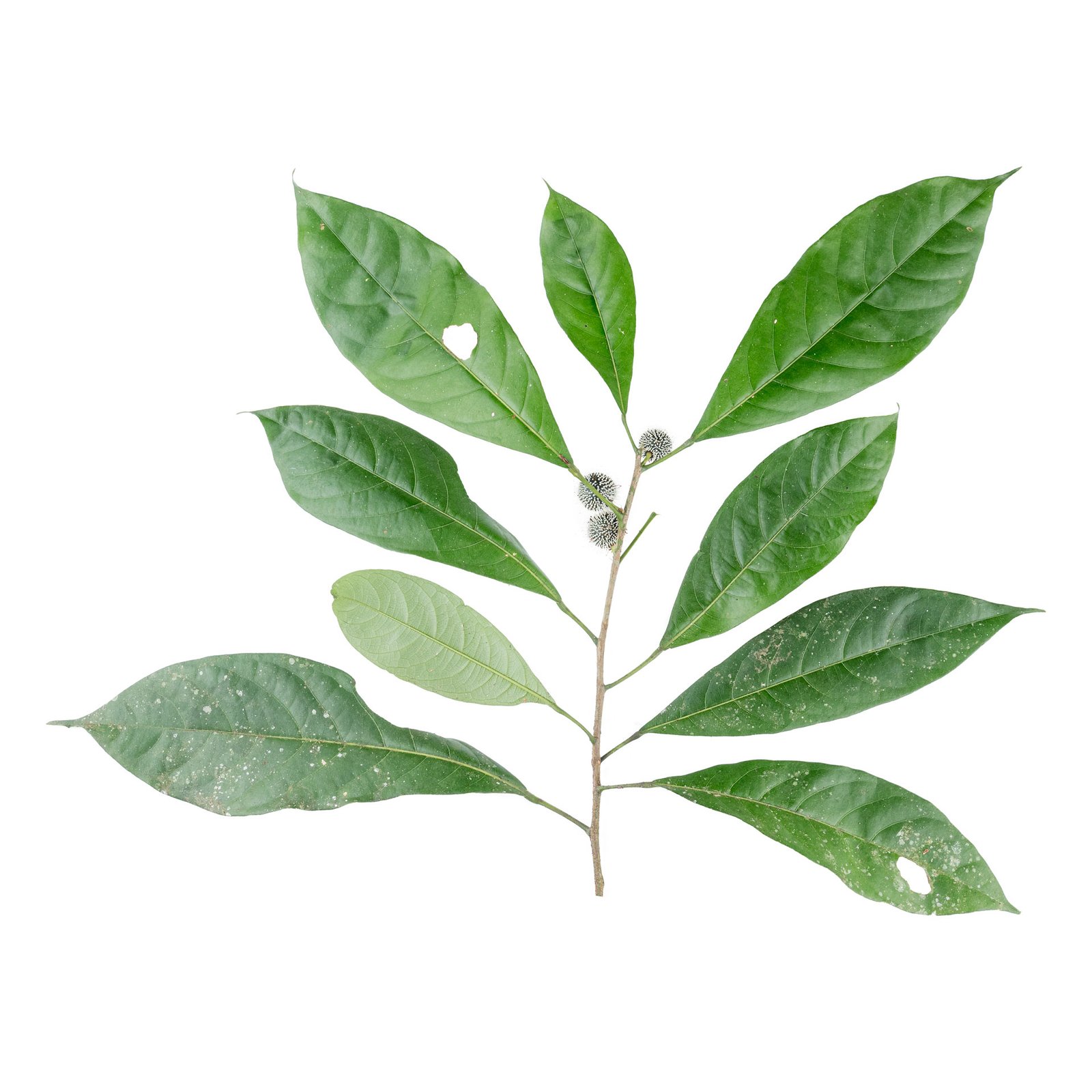 Árbol de 9 m de altura, pubescente en el ápice de las ramas, hojas simples, alternas, peciolo engrosado apicalmente. Bayas globosas, negras, con suaves espinas blancas pegajosas, estigma persistente lobado
