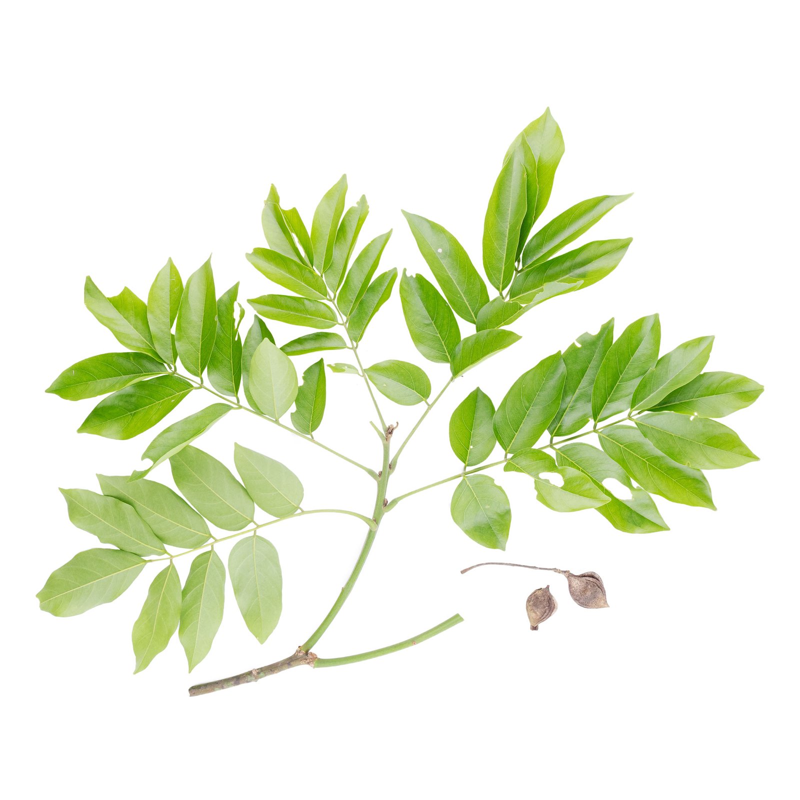 Árbol de 15 m de altura. Hojas alternas, compuestas, 8-14 foliolos opuestos, margen entero. Infrutescencia en racimo terminal. Legumbres oblongas con3 – 4 semillas rojas de 5 a 6 mm de largo