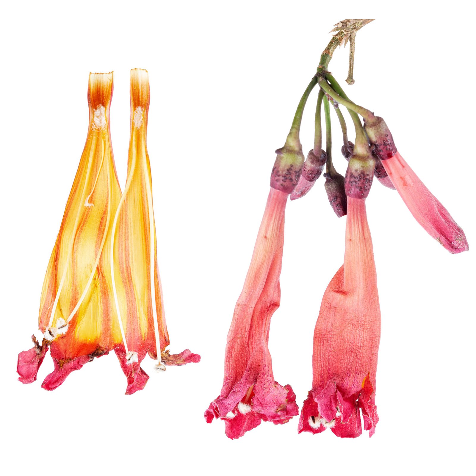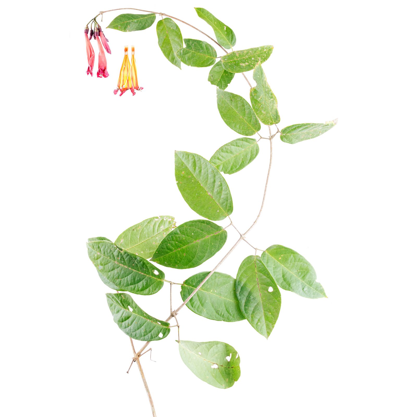 Hierba escandente. Hojas bifoliadas, con estípulas axilares cónicas. Inflorescencia apical racimosa, corola gamopétala, rosada y amarilla de hasta 15 cm de longitud, lóbulos del perianto con puntos oscuros, 4 estambres amarillo claro de menos de 15 cm, anteras pubescentes, gineceo de la mitad de la longitud de los estambres