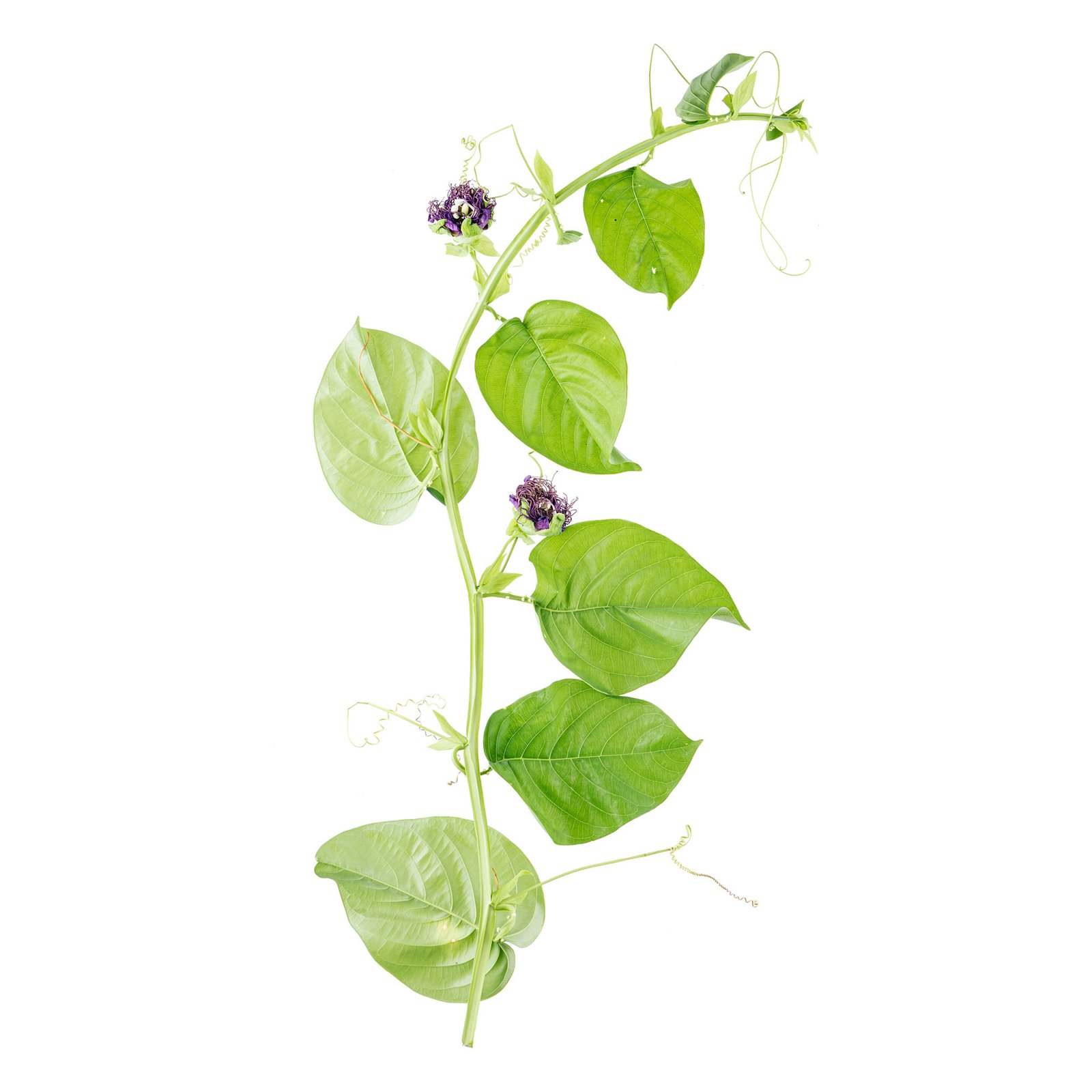 Bejuco con zarcillos. Hojas ovoides de entre 10 y 20 cm de longitud, con uno a tres pares de glándulas hacia la base, dos estípulas lanceoladas en la base del peciolo. Flores solitarias, axilares, varias series de estaminodios de hasta 4 cm de largo, morados. Androceo blanco con anteras medifijas, gineceo blanco trilobulado
