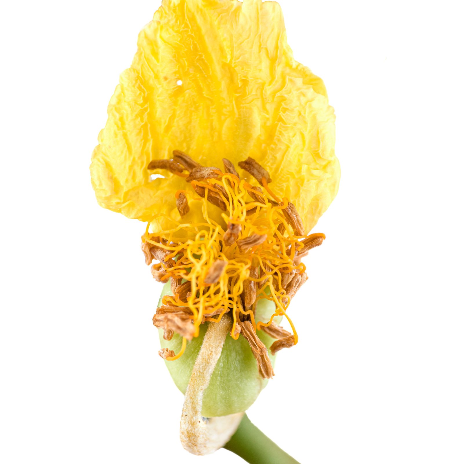 Altura: 12 m, DAP: 14,1 cm, diámetro de copa: 8 m. Hojas lustrosas discoloras, pubescencia en el envés y nervadura principal amarilla; inflorescencia caulinar con cáliz revoluto de color verde claro, pétalo amarillo y estambres amarillos con anteras de color marrón, botones globosos de color verde claro, exudado rojizo que se endurece al secar